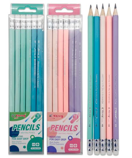 | Карандаш чернографитный с ластиком YALONG HB (шестигранный цветной корпус) (заточенный) Ассорти