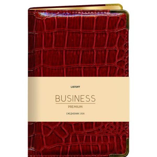Ежедневник датированный на 2026год А6 кожзам (линейка) ( 352 страницы) (ЭКСМО) (твёрдая обложка) Grand croco бордо (п/упаковка)Марка/Производитель: ЭКСМО  Ежедневник датированный А6 формата премиум-класса коллекции «BUSINESS PREMIUM» от бренда «Listoff” снабжены всем необходимым для планирования: алфавитным разделом для записей и календарями на два года. Переплет ежедневника из коллекции BUSINESS PREMIUM выполнен из термоактивного итальянского материала с имитацией кожи. Золоченый торец блока и металические скругленные углы изделия подчеркивают неповторимый стиль. Красивый дизайн и компактный формат ежедневника делают его достойным аксессуаром. Листаж 176 л., 2 ляссе, датированный блок. 70 гр/м2. Календарь 2026 - 2027 год Перфориции углов блока - НЕТ |