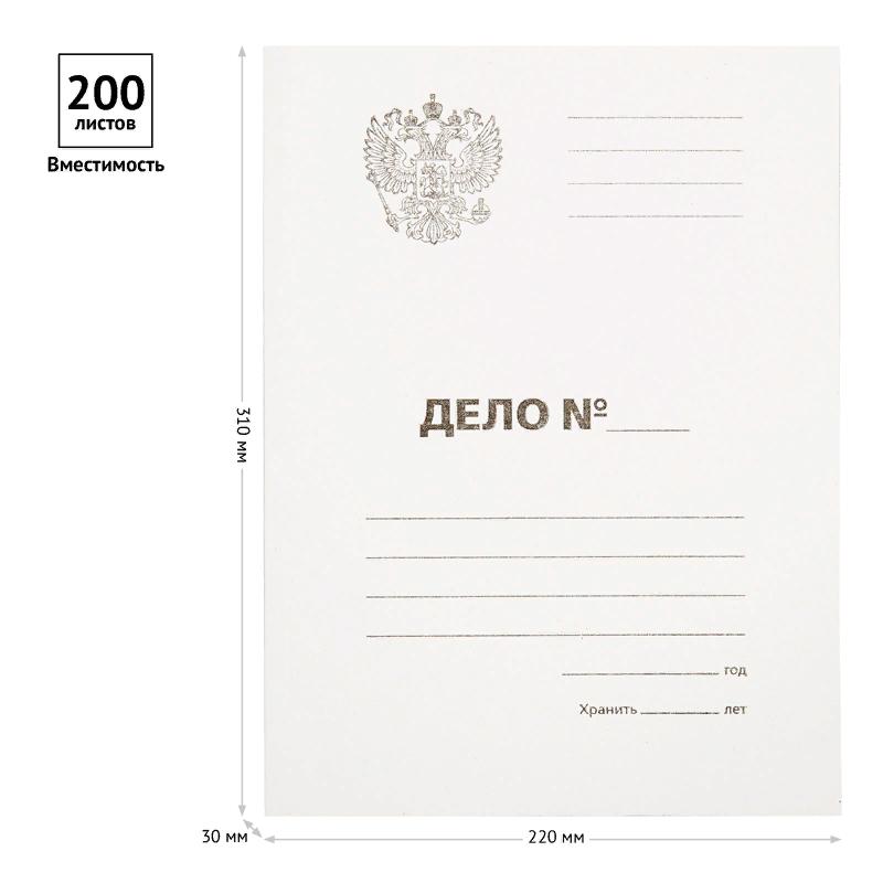 Папка Обложка картонная "Дело" белая (плотность 300г/кв м) OfficeSpace Символика РФ  Папка-обложка OfficeSpace серии «Дело» с гербом РФ формата А4 предназначена для хранения бумаг. Изделие размером 310*220 мм выполнено из немелованного картона белого цвета, плотностью 300 г/м2. Ширина корешка составляет 30 мм. Отсутствие скоросшивателя позволяет организовать хранение бумаг без использования дырокола. На лицевой стороне располагаются поля для надписей. Папка вмещает до 200 листов. |