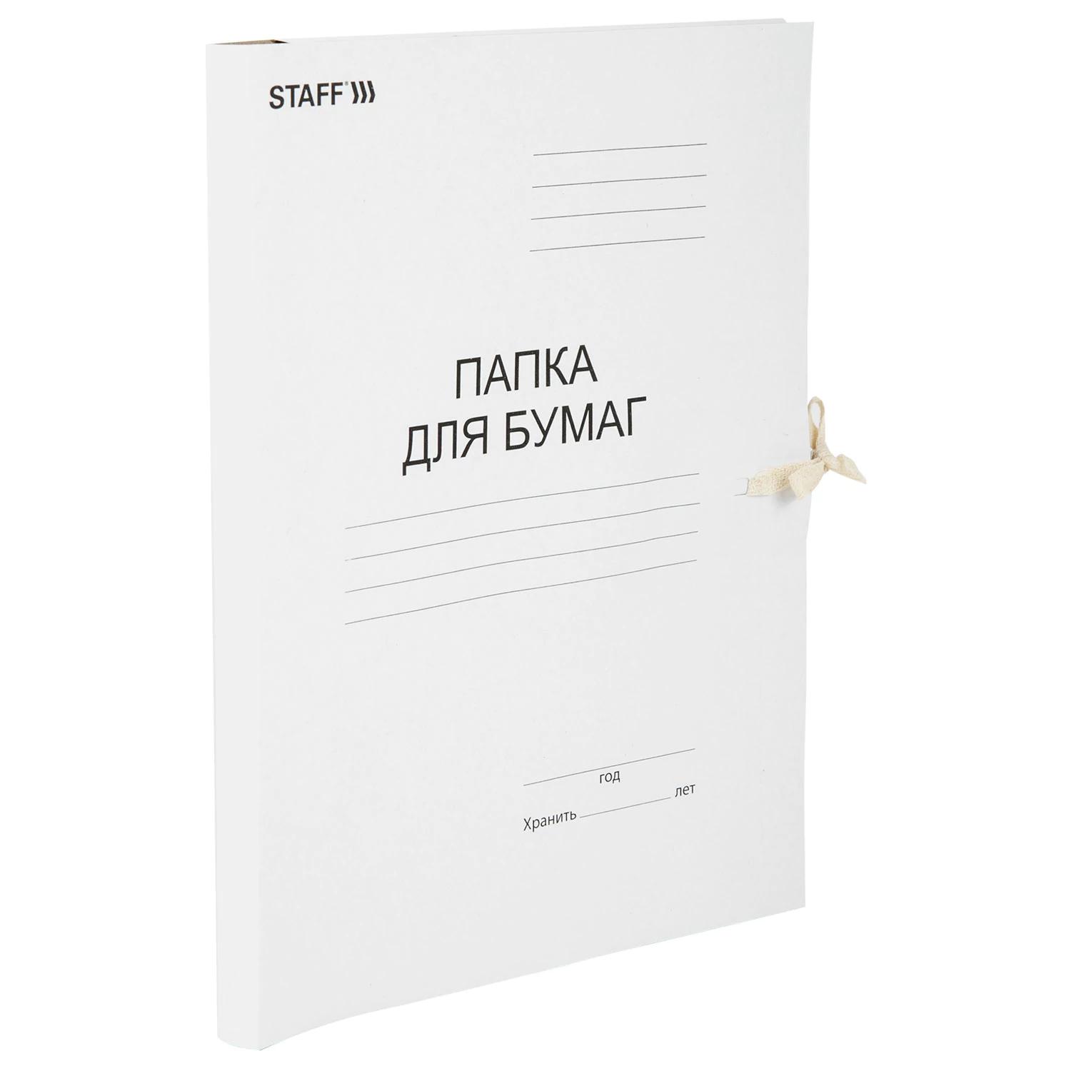 | Папка для бумаг на завязках картонная (плотность 220г/кв м) STAFF белая  Папка STAFF на завязках с цельновырубными клапанами предназначена для хранения документов. Папка стандартного формата А4 вмещает до 200 листов. Изготовлена из немелованного картона плотностью 220 г/м2. Ширина корешка составляет 25 мм. На лицевой стороне есть поля для подписывания. Поставляется в гофрокоробе. С папкой для бумаг STAFF все важные бумаги будут в целости и сохранности. |