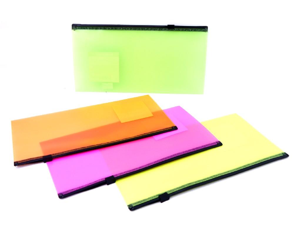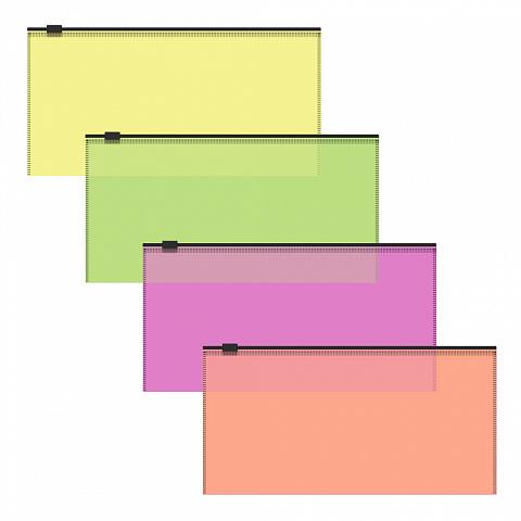 Предназначен для хранения и транспортировки небольшого количества документов. Цвет ZIP-пакета – ассорти: желтый, зеленый, оранжевый, розовый. ZIP-пакеты разного цвета/дизайна упакованы по 12 штук. Товар представлен в ассортименте без возможности выбора цвета/дизайна. Удобная ZIP-молния обеспечивает быстрый доступ к бумагам, оснащен карманом для визитной карточки. ZIP-пакет вмещает до 100 бумажных листов. Размер ZIP-пакета - 255х130мм, толщина материала - 0.14мм. |