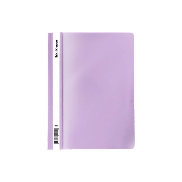 | Скоросшиватель (папка) мягкий пластиковый с прозрачным верхом А5+ ErichKrause Matt Pastel Bloom MIX Ассорти  Папка-скоросшиватель формата А5+ из высококачественного пластика с текстурой поверхности "песок", на которой не видно отпечатков пальцев и мелких царапин. Предназначена для быстрого сшивания, хранения и просмотра документов. Цвет папки – ассорти: голубой, зеленый, персиковый, фиолетовый. Механизм - механический скоросшиватель; прозрачный верхний лист; усиленный пластиковый корешок с прозрачной полосой для информационной карточки. Размер - 230х170мм, толщина верхнего листа - 0.12мм, толщина нижнего листа - 0.18мм. Код и баркод на каждой единице товара. Папка-скоросшиватель разного дизайна упакованы по 20 штук. |
