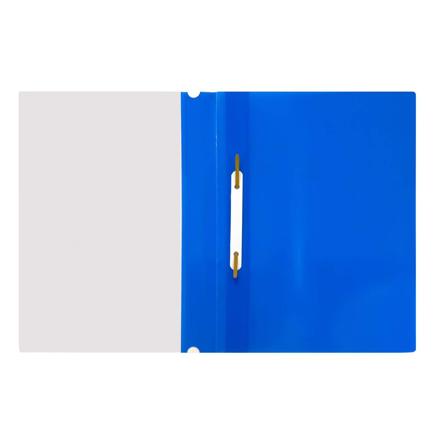 | Скоросшиватель (папка) мягкий пластиковый с прозрачным верхом А5 БЮРО синий  Папка-скоросшиватель предназначена для быстрого сшивания, хранения и просмотра документов. Механизм - механический скоросшиватель; прозрачный верхний лист. . Верхний прозрачный лист толщиной 140мкм позволяет без лишних усилий идентифицировать содержимое. Толщина нижнего листа 180мкм. Усиленный пластиковый корешок, с индексной полосой для размещения информации, позволяет удобно систематизировать документы. Фиксирует до 50 листов бумаги, в зависимости от ее плотности. На каждой папке индивидуальный штрихкод. |