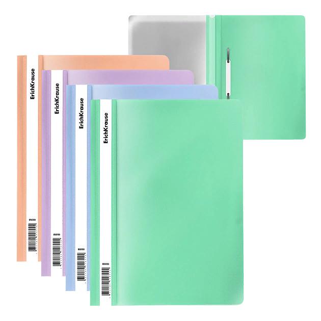 | | Скоросшиватель (папка) мягкий пластиковый с прозрачным верхом А4 ErichKrause Fizzy Pastel MIX Ассорти  Папка-скоросшиватель пластиковая формата А4 из высококачественного пластика с текстурой поверхности "апельсиновая корка", на которой не видно отпечатков пальцев и мелких царапин. Предназначена для быстрого сшивания, хранения и просмотра документов. Цвет папки – ассорти: фиолетовый, желтый, голубой, розовый. Папки разного дизайна упакованы в минимальной партии. Товар представлен в ассортименте без возможности выбора цвета/дизайна. Механизм - механический скоросшиватель; прозрачный верхний лист; усиленный пластиковый корешок с прозрачной полосой для информационной карточки Папка вмещает до 130 бумажных листов. Размер - 312х230 мм, толщина верхнего листа - 0.12 мм, толщина - 0.18 мм. |