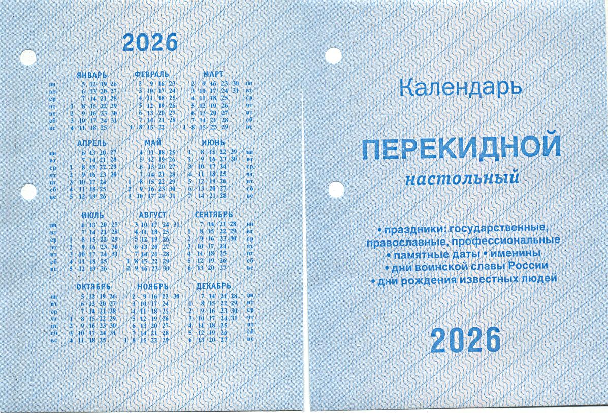 | | Календаль на 2026 год настольный перекидной АТБ НПК-32-26 офсет Дел человека 2 краски (п/упаковка)  Настольный перекидной календарь - практически неизменный атрибут рабочего места, незаменимый помощник в работе. Он способен выгодно дополнить интерьер кабинета или украсить рабочий стол, полностью сохраняя своё функциональное назначение. Предназначен для организации и планирования рабочего времени и, что не менее важно, досуга. Конечно, делать заметки и вписывать напоминания в настоящее время можно и в современных электронных гаджетах. А еще это оптимальная форма сувенирной полиграфической продукции, предназначенной в качестве корпоративного или офисного подарка. |