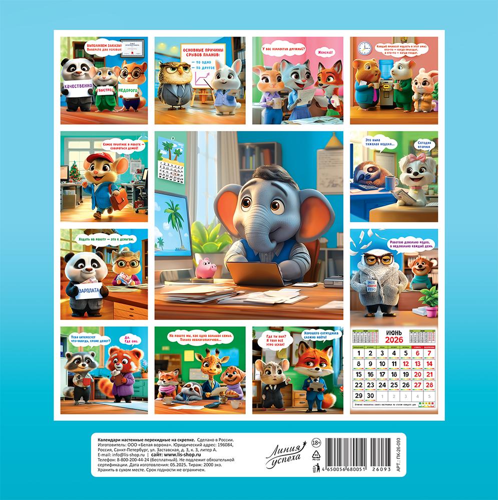 | Календарь на 2026год настенный на скрепке 12 листов (ФОНТАНКА) ПК-26-093 23*23см Улыбаемся и пашем Офисный  12 листов, на скрепке, размер 230х235мм. Обложка: УФ-лак, картон 225 г/м. Внутренний блок: бумага мелованная 100 г/м. |