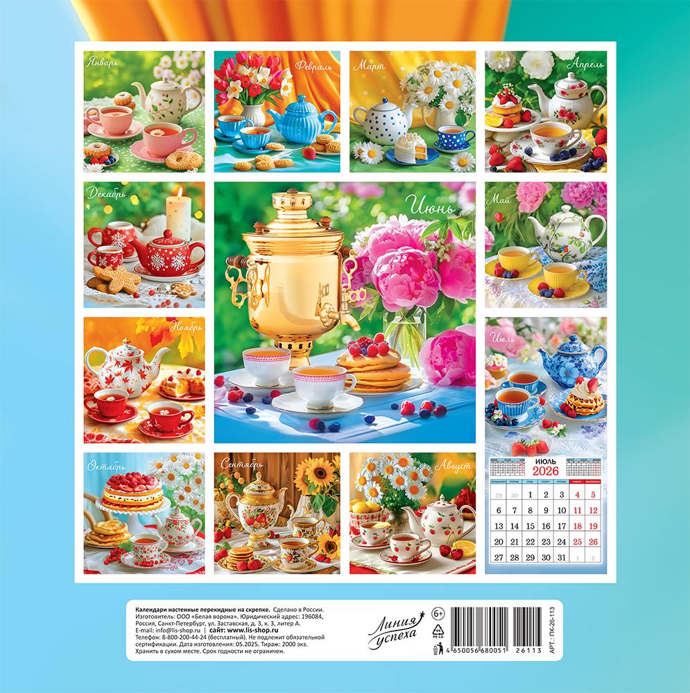 | | Календарь на 2026год настенный на скрепке 12 листов (ФОНТАНКА) ПК-26-113 23*23см Чаепитие  12 листов, на скрепке, размер 230х235мм. Обложка: УФ-лак, картон 225 г/м. Внутренний блок: бумага мелованная 100 г/м. |