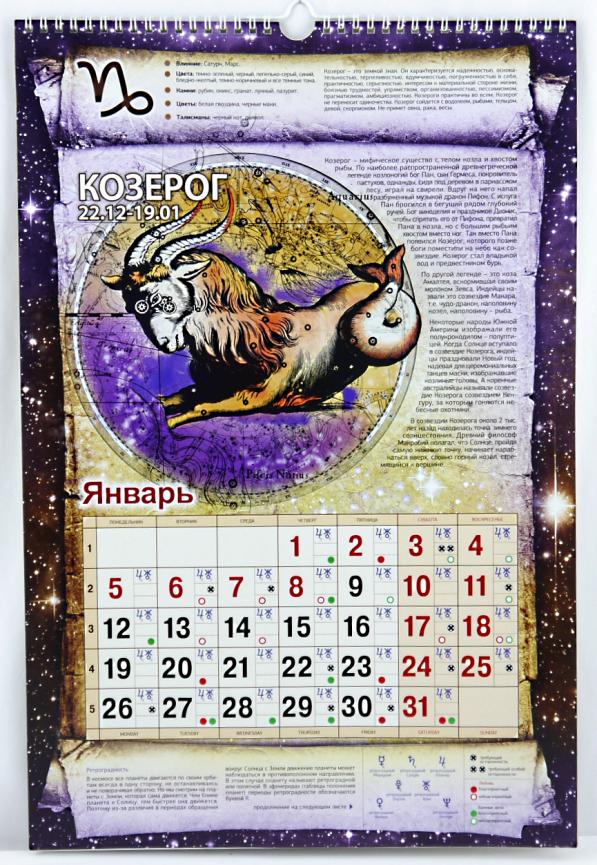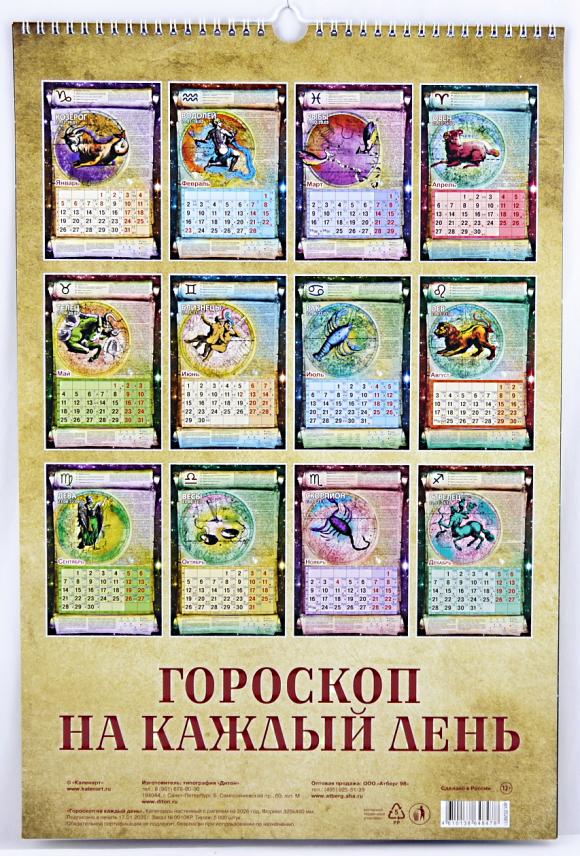 | | Календарь на 2026год настенный на спирали АТБ 0526011 32*48см Гороскоп на каждый день (п/упаковка с европодвесом)  Настенный календарь - это универсальный атрибут дома и офиса. Помимо своей основной функции - сообщать текущую дату; он помогает планировать дела, подводить итоги дня, недели и месяца. Яркий и красивый календарь может служить украшением стены и оживлять дизайн помещения. Календарями пользуются бизнесмены и политики, менеджеры и преподаватели, медики, студенты и школьники. Его можно использоватьи в домашнем обиходе; отмечать события и дела, связанные с жизнью семьи, обучать ребенка ориентироваться в днях недели. Человечество изобрело календарь для того, чтобы иметь возможность планировать будущее |