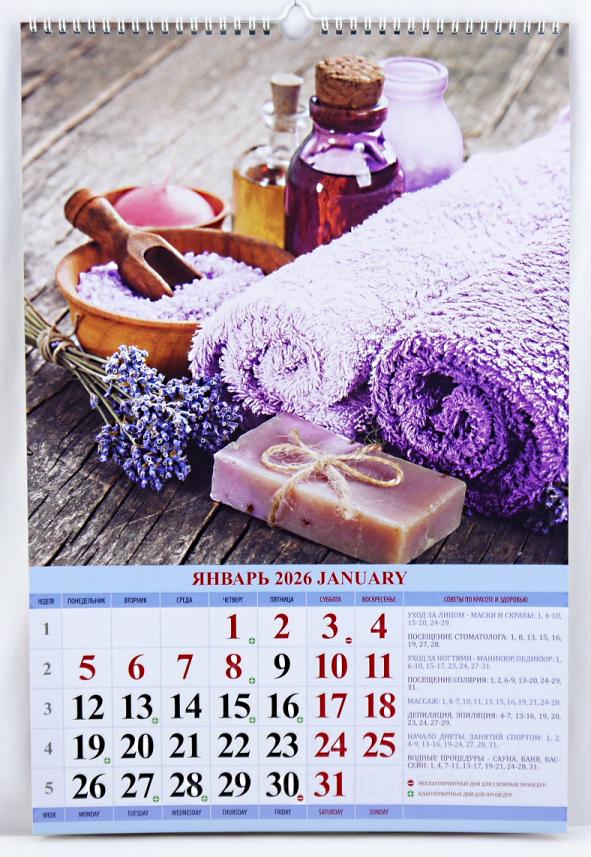 | | Календарь на 2026год настенный на спирали АТБ 0526012 32*48см Для женщин Лунный здор и крас (п/упаковка с европодвесом)  Настенный календарь - это универсальный атрибут дома и офиса. Помимо своей основной функции - сообщать текущую дату; он помогает планировать дела, подводить итоги дня, недели и месяца. Яркий и красивый календарь может служить украшением стены и оживлять дизайн помещения. Календарями пользуются бизнесмены и политики, менеджеры и преподаватели, медики, студенты и школьники. Его можно использоватьи в домашнем обиходе; отмечать события и дела, связанные с жизнью семьи, обучать ребенка ориентироваться в днях недели. Человечество изобрело календарь для того, чтобы иметь возможность планировать будущее |
