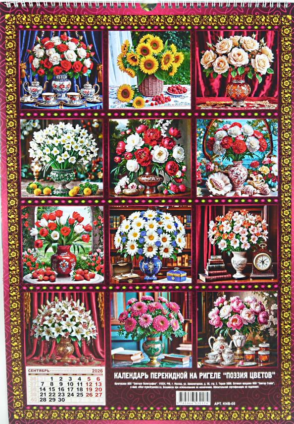 Календарь на 2026год настенный на спирали ЭЛС KNB-05 51*35см Поэзия цветов (п/упаковка с европодвесом)  Настенный календарь - это универсальный атрибут дома и офиса. Помимо своей основной функции - сообщать текущую дату; он помогает планировать дела, подводить итоги дня, недели и месяца. Яркий и красивый календарь может служить украшением стены и оживлять дизайн помещения. Календарями пользуются бизнесмены и политики, менеджеры и преподаватели, медики, студенты и школьники. Его можно использоватьи в домашнем обиходе; отмечать события и дела, связанные с жизнью семьи, обучать ребенка ориентироваться в днях недели. Человечество изобрело календарь для того, чтобы иметь возможность планировать будущее. |