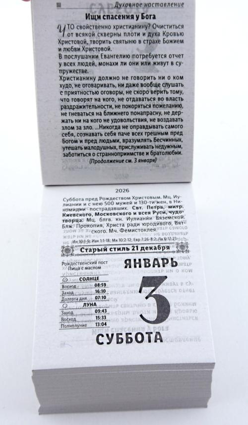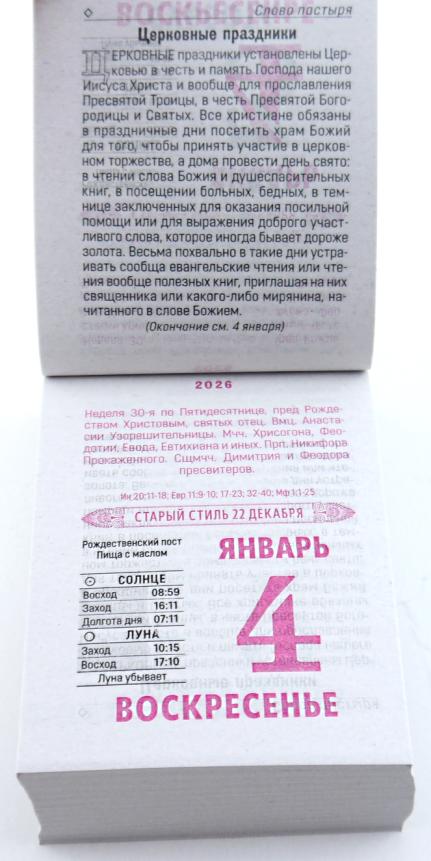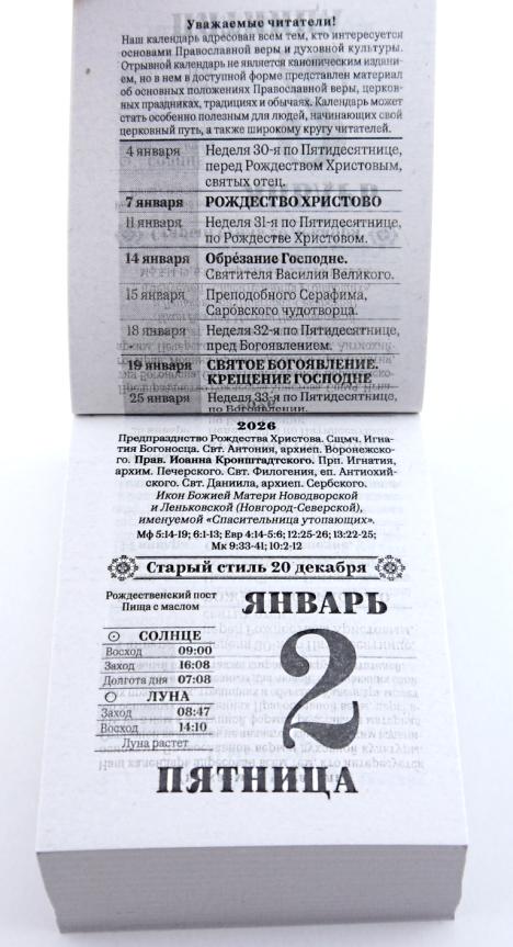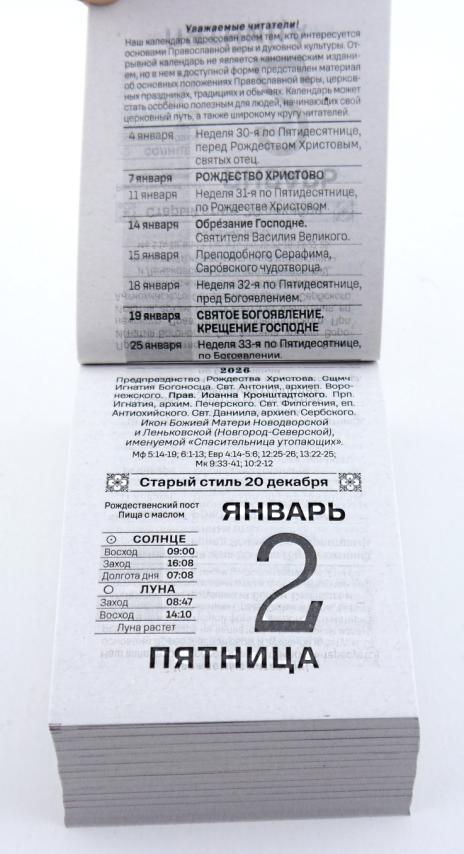 | | Календарь на 2026 год отрывной АТБ ОКА2026 Православный семейный (газетная бумага)