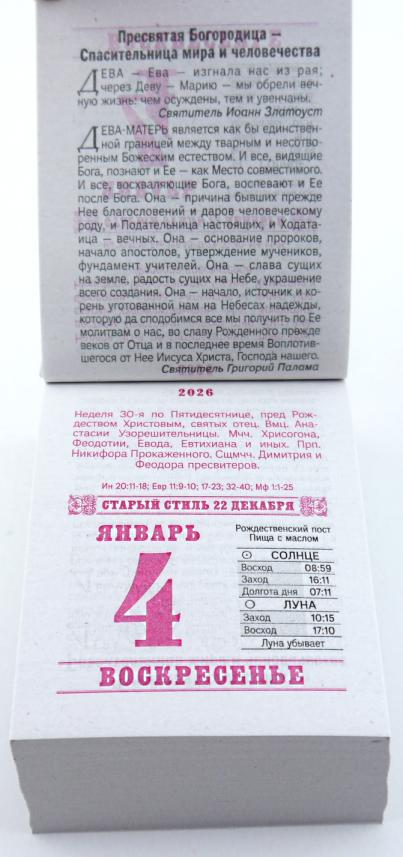| Календарь на 2026 год отрывной АТБ ОКА2326 Пресвятая Богородица (газетная бумага)