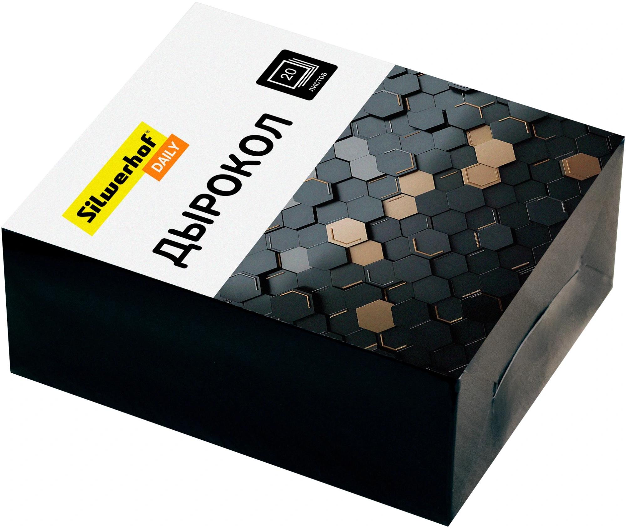 | Дырокол 20 листов SILWERHOF с линейкой Daily (металлический корпус) черный (картонная упаковка)