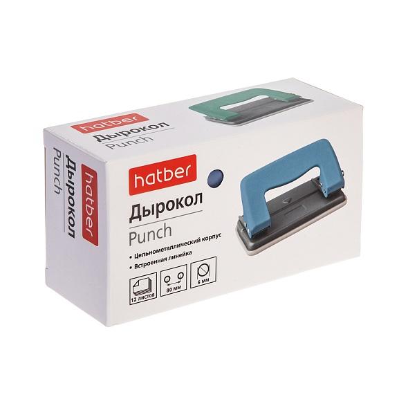 | Дырокол (ХАТБЕР) 12 листов (металлический корпус) с линейкой черный (картонная упаковка)