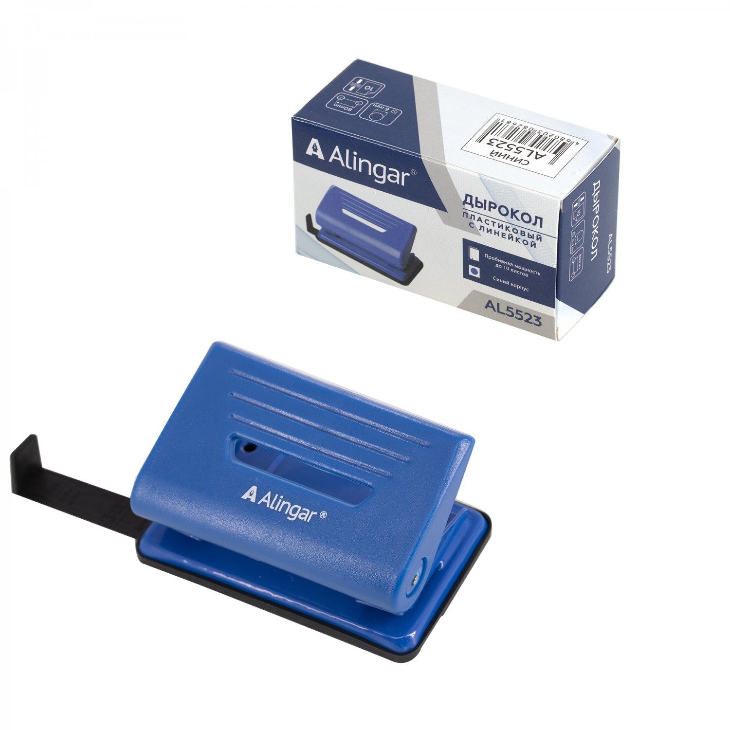 | | Дырокол 10 листов ALINGAR с линейкой синий (картонная упаковка)  Дырокол Alingar 10л.,пластик ,с линейкой, синий |
