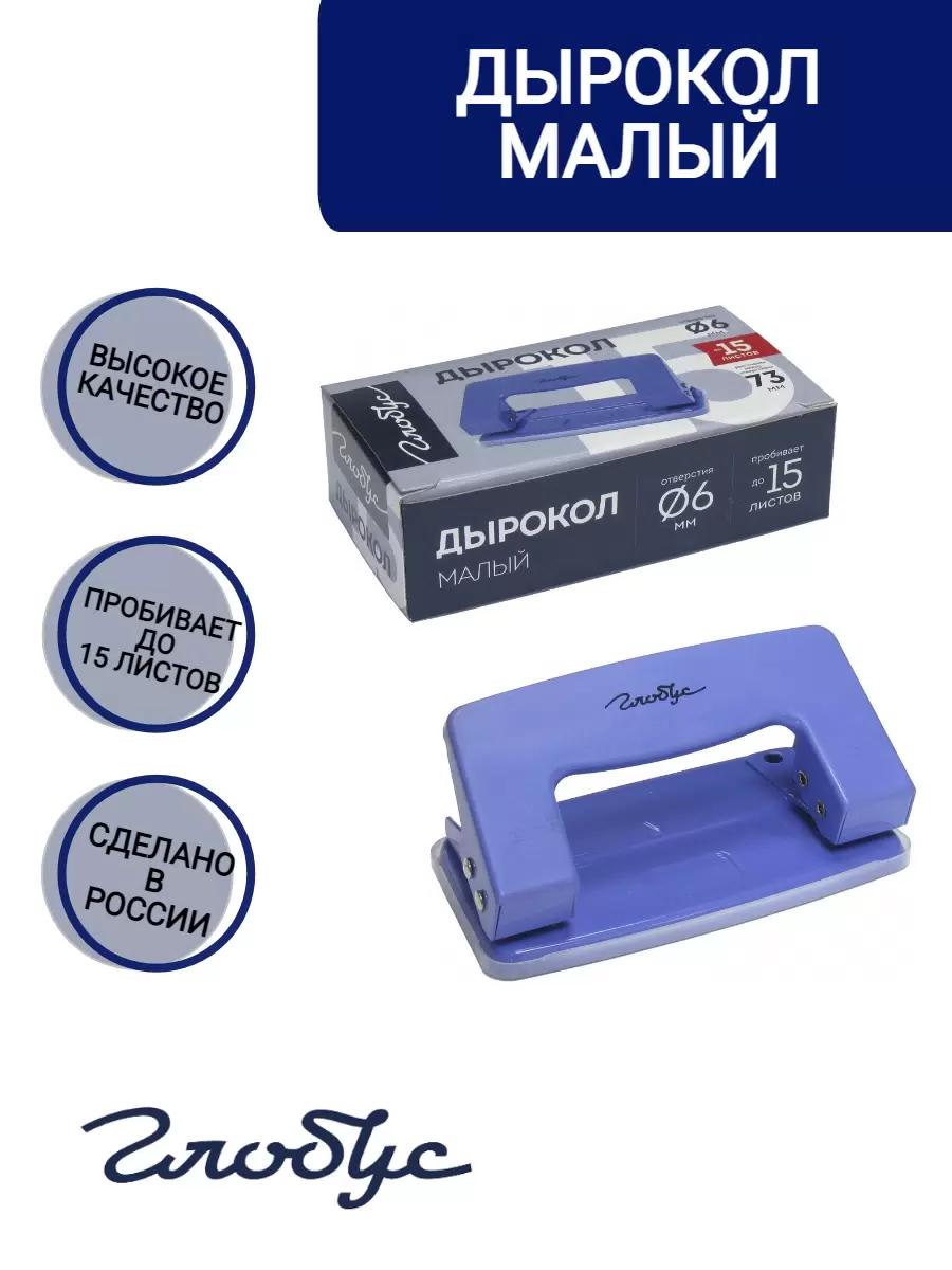 Дырокол ГЛОБУС 15 листов металл синий (картонная упаковка)  Дырокол малый. Пробивная способность - 15 листов. Диаметр отверстия - 6 мм. Расстояние между отверстиями - 73 мм. Имеет фиксатор закрытого положения. Удобный пластиковый контейнер для отходов, который легко открывается и закрывается. |