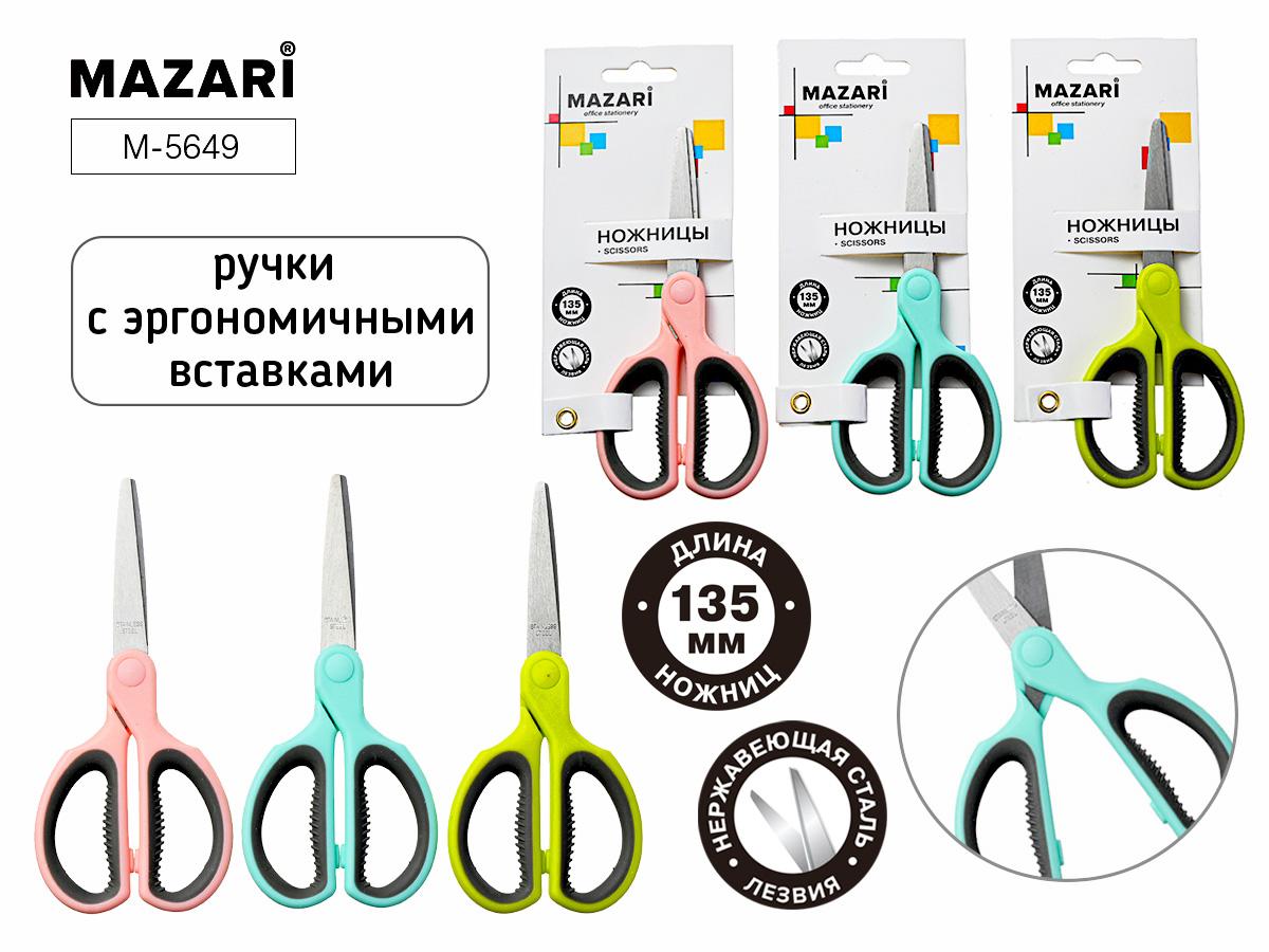 | | Ножницы 135мм MAZARI Mix (резиновая вставка) (картонная упаковка с европодвесом) Ассорти  Ножницы офисные, MIX, 135 мм, лезвия из нержавеющей стали, пластиковые ручки с эргономичными вставками ассорти 3 цвета, блистер с европодвесом Нужно что-то подрезать, отрезать или подровнять? На помощь спешат офисные ножницы, которые всегда выручат в экстренной ситуации. Стальные лезвия долго остаются острыми, режут ровно и качественно. Эргономичные кольца удобно ложатся в руке, обеспечивая комфортную работу. 5 причин для покупки ножниц: - важная канцелярская принадлежность на рабочем столе менеджера, бухгалтера и секретаря - удобно разрезать бумагу, открывать письма, нарезать скотч - лезвия хорошо держат заточку, не боятся влаги, не покрываются ржавчиной - кольца продуманной формы из высокопрочного пластика. |