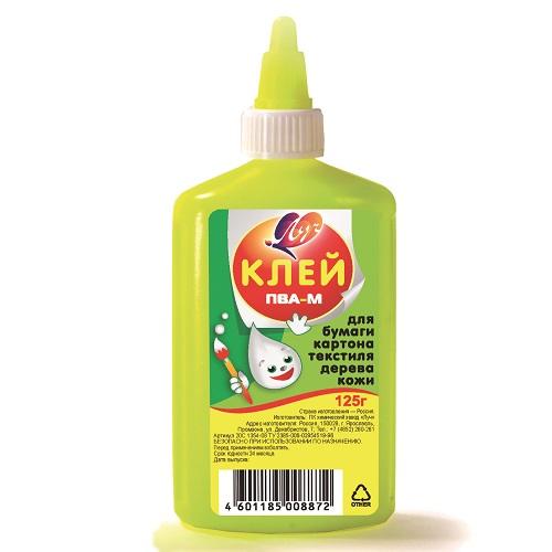 | Клей ПВА 65гр ЛУЧ желтый флакон 20С1352-08  Клей ориентирован на повседневные нужды широкого круга покупателей (учащиеся, офисные работники). Предназначен для приклеивания различных поверхностей (бумага, картон, кожа, ткань). Цвет флакона жёлтый флуоресцентный. Не оставляет белых следов при высыхании. Обладает эластичностью, при высыхании не трескается. Имеется съемный колпачок, который предохраняет клей от засыхания. Экономичен в использовании. Морозоустойчив. После шести циклов процесса "замораживания"/"размораживания" сохраняет клеящие свойства. Срок годности 36 месяцев. |