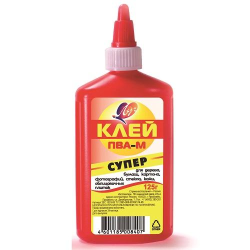 | Клей ПВА 150гр Обнинск "капелька"  Клей ПВА незаменим в домашнем хозяйстве, с его помощью склеивают бумагу, картон, ткани, фарфор, кожу и т.д. Также клей ПВА активно используется в детском творчестве, как в домашних условиях, так и в детских учреждениях. Смешав ПВА и гуашь в равных пропорциях, получают доступный по цене аналог акриловой краски. Клей не токсичен и легко отстирывается от ткани. Работать с ним могут дети в возрасте от трех лет. |