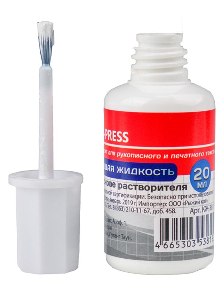 Корректирующая жидкость 10мл ИДП 20гр (водная основа) с кисточкой  Корректирующая жидкость пригодится офисным сотрудникам, школьникам и студентам для исправления ошибок в печатных или рукописных текстах. Кисть удобна в использовании для коррекции ошибок любой площади. Перед применением жидкость необходимо взболтать, а после использования закрыть колпачком, чтобы предотвратить засыхание. Средство мгновенно высыхает на бумаге, ложится тонким слоем, не оставляя контуров. На водной основе. Объём: 10 мл. |