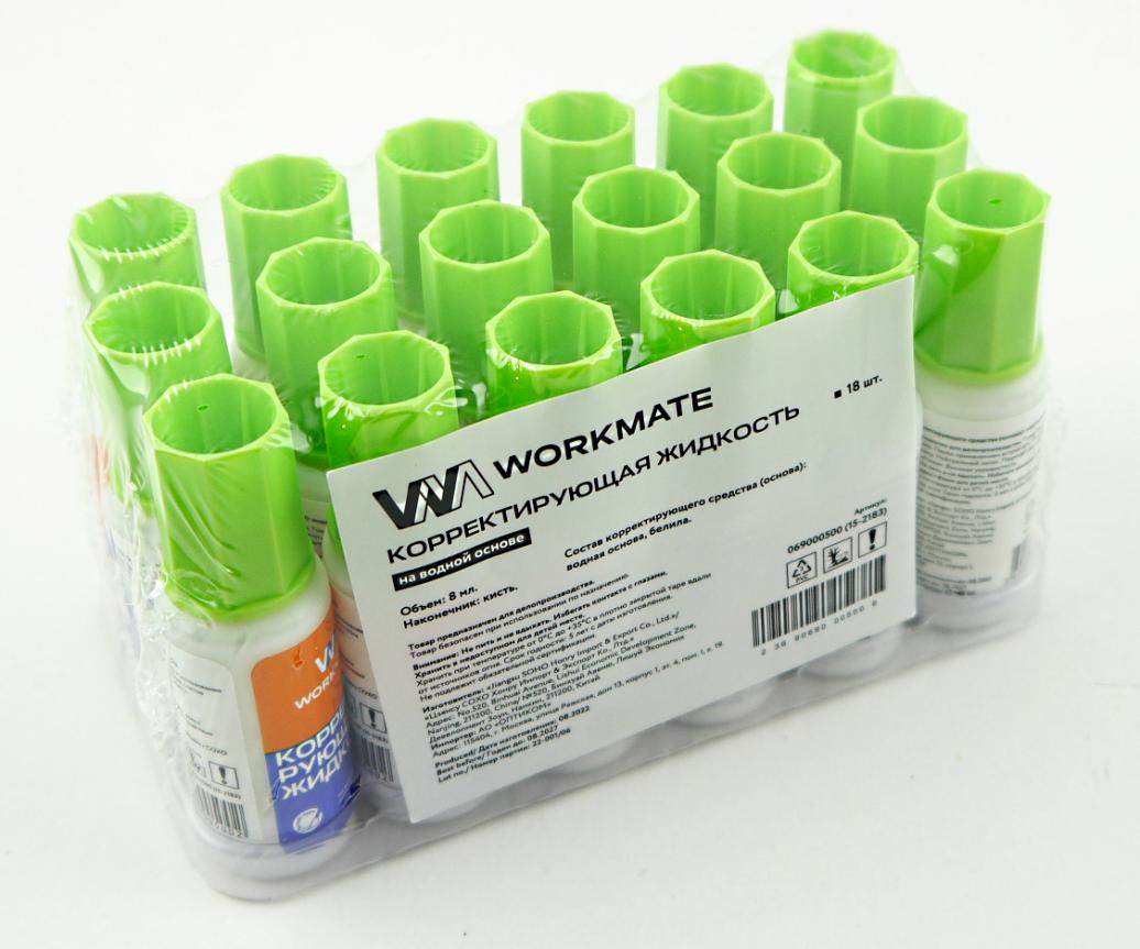 Корректирующая жидкость 8мл WORKMATE (водная основа) с кисточкой морозост 15-2183  Корректирующая жидкость Workmate предназначена для аккуратной корректировки рукописного и печатного текста. Может использоваться на всех типах бумаги. Наносится ровным слоем, создает плотное покрытие. Имеет водную основу, быстро высыхает. Металлический шарик внутри флакона позволяет равномерно перемешивать жидкость перед использованием. Объем флакона 8 мл. В упаковке 18 штук. |