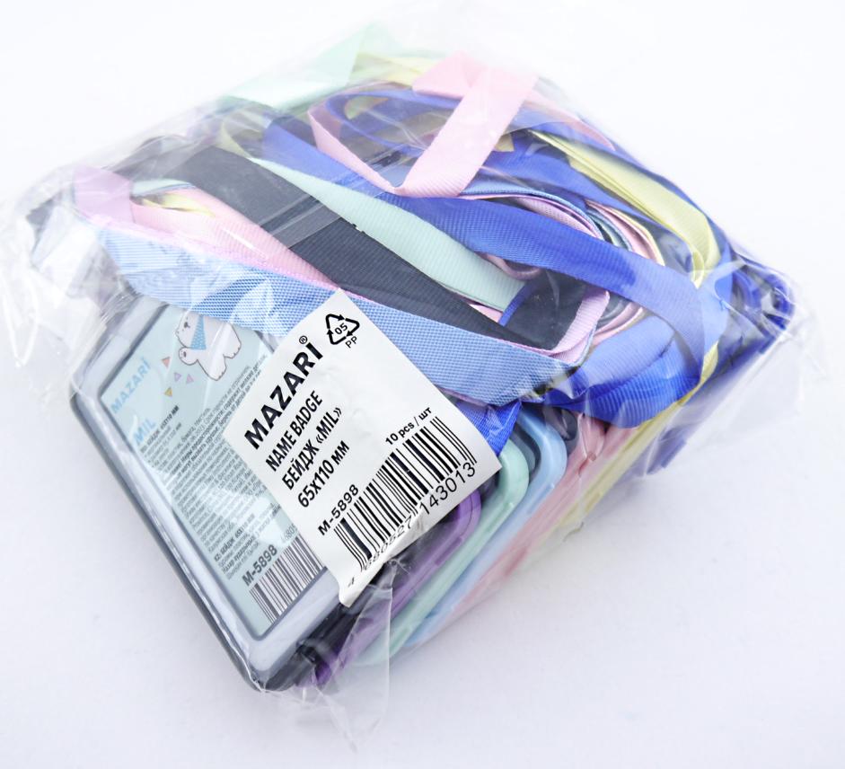 | Бейдж нагрудный горизонтальный MAZARI 103*75 на ленте Personality Ассорти  Бейдж предназначен для идентификации участников конференций, тренингов и курсов, сотрудников компаний, может использоваться для визитных карточек и пропусков. Размер 103х75 мм: достаточно, чтобы крупным шрифтом набрать имя, фамилию и должность человека. Специальная выемка предназначена для быстрой и удобной смены вкладыша В минимальной партии один цвет. Товар представлен в ассортименте без возможности выбора цвета/дизайна. |