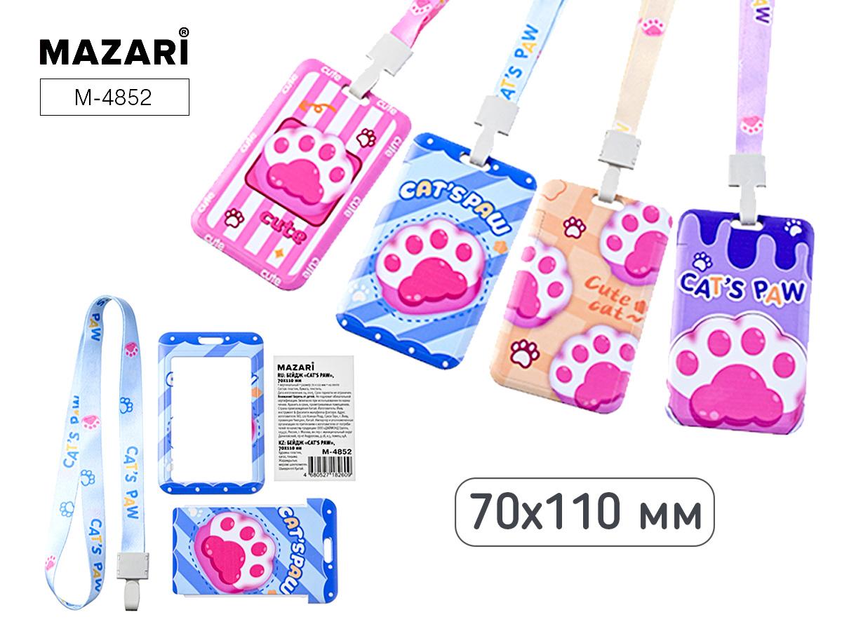 | Бейдж нагрудный вертикальный MAZARI 110*70 на шнурке Коты (п/упаковка с европодвесом) Ассорти  Бейдж вертикальный CAT, 70х110мм, на шнурке, микс 4 цвета, ОПП- упаковка Бейдж предназначен для идентификации участников конференций, тренингов и курсов, сотрудников компаний, может использоваться для визитных карточек и пропусков. Размер 70х110мм: достаточно, чтобы крупным шрифтом набрать имя, фамилию и должность человека. Специальная выемка предназначена для быстрой и удобной смены вкладыша. Сейчас этот атрибут уже просто необходим в офисах, при проведении презентаций, выставок. |