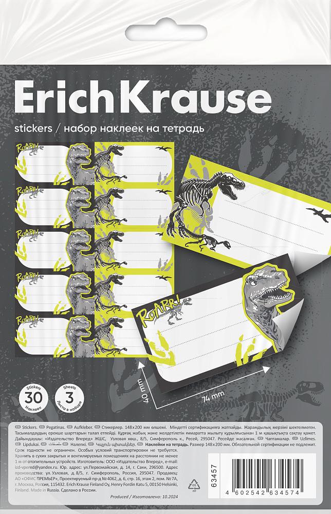 | | Наклейка для тетрадей набор ErichKrause 30шт Dinosaur Park (п/упаковка с европодвесом)  Наклейки на тетради, книги, дневники, альбомы. В наборе 30 штук формата 40*74 мм. Наклейки изготовлены из самоклеящейся бумаги, вырезаны по контуру, легко снимаются с подложки и надежно крепятся на любой гладкой, чистой поверхности. На стикерах можно легко писать любой шариковой, гелевой ручкой или маркером. Упакованы в прозрачный пакет с подвесом. |