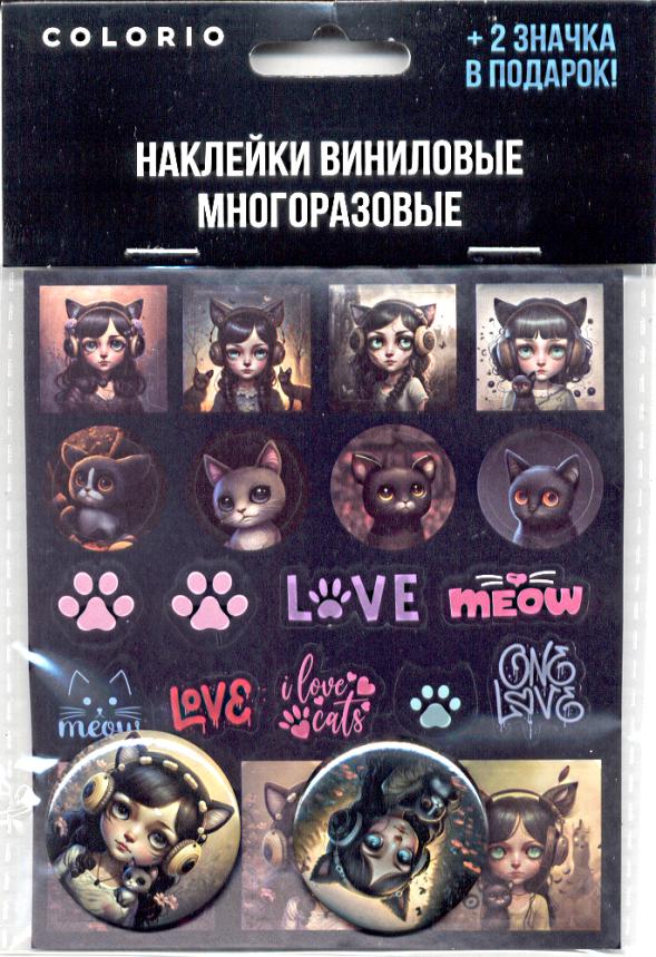 | Наклейка винил 12*10 5см (АКАДЕМИЯ) многораз +2 значка Девочка-кошка (п/упаковка с европодвесом)  Наклейки виниловые многоразовые + 2 значка в подарок! 10,5*12 см Материал товара: поливинилхлорид |