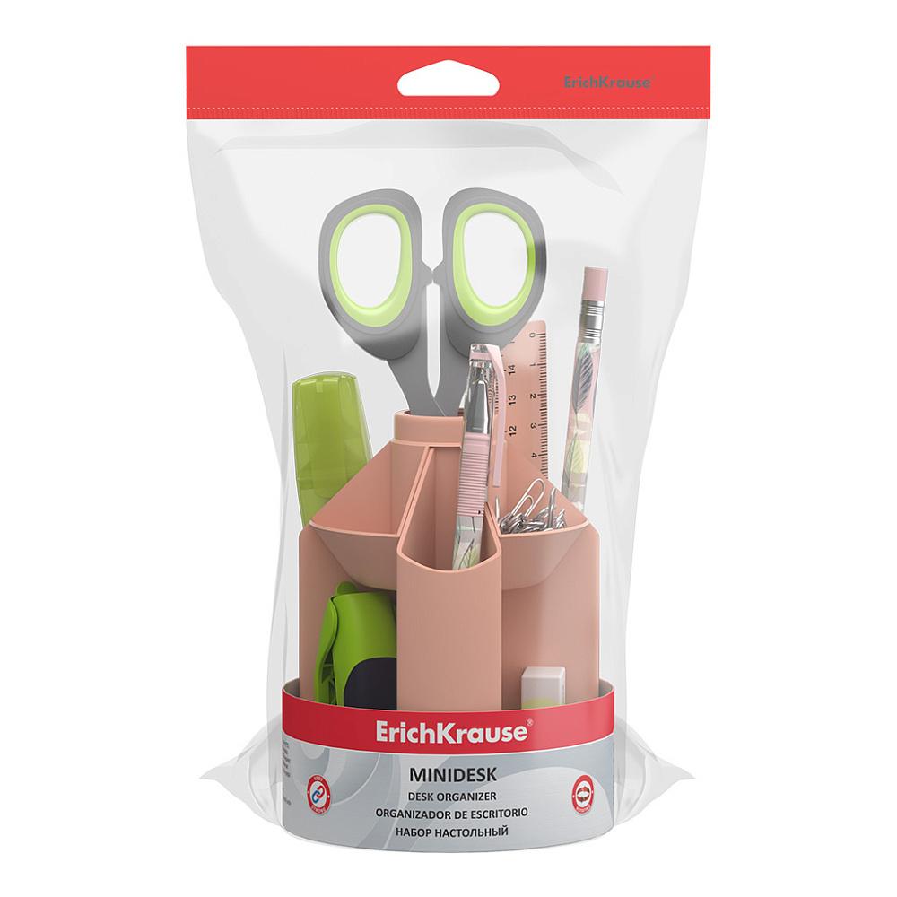Органайзер (настольный канцелярский набор) ( 12 предметов) ErichKrause вращающ Mini Desk Powder персиковый (п/упаковка с европодвесом)