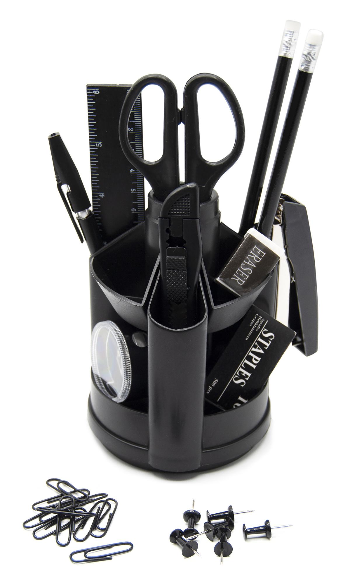 Органайзер (настольный канцелярский набор) ( 17 предметов) SILWERHOF вращающийся черный (картонная упаковка) 1206589