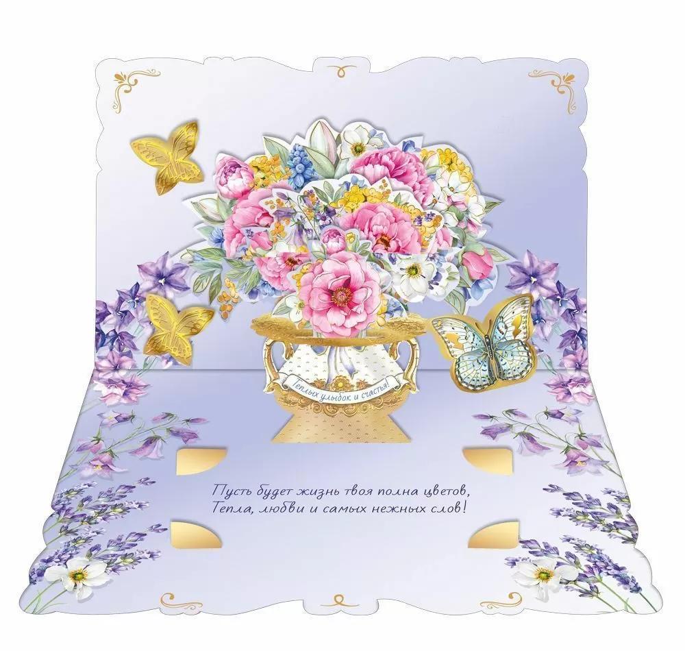 | Открытка Поздравительная (ДЕНЬ РОЖДЕНИЯ) А5 АВП 5РС-126 С Днем Рождения! (женская) сложнотехническая (объемная) (тиснение золотой фольгой) (п/упаковка)
