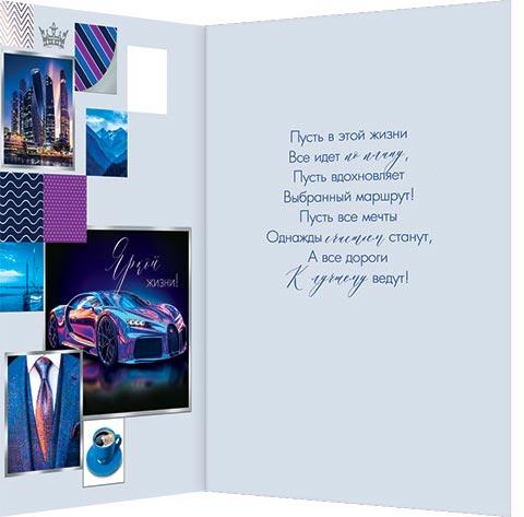 | | Открытка Поздравительная А4 (МИР ОТКРЫТОК) 1-41-1148А Поздравляю! (мужская) (тиснение серебряной фольгой)  Поздравляю! Пусть в этой жизни Все идет по плану, Пусть вдохновляет Выбранный маршрут! Пусть все мечты Однажды счастьем станут, А все дороги К лучшему ведут! |