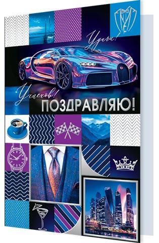 | | Открытка Поздравительная А4 ФДА 34-702-TK Поздравляю! (мужская) (конгрев) (с блестками)