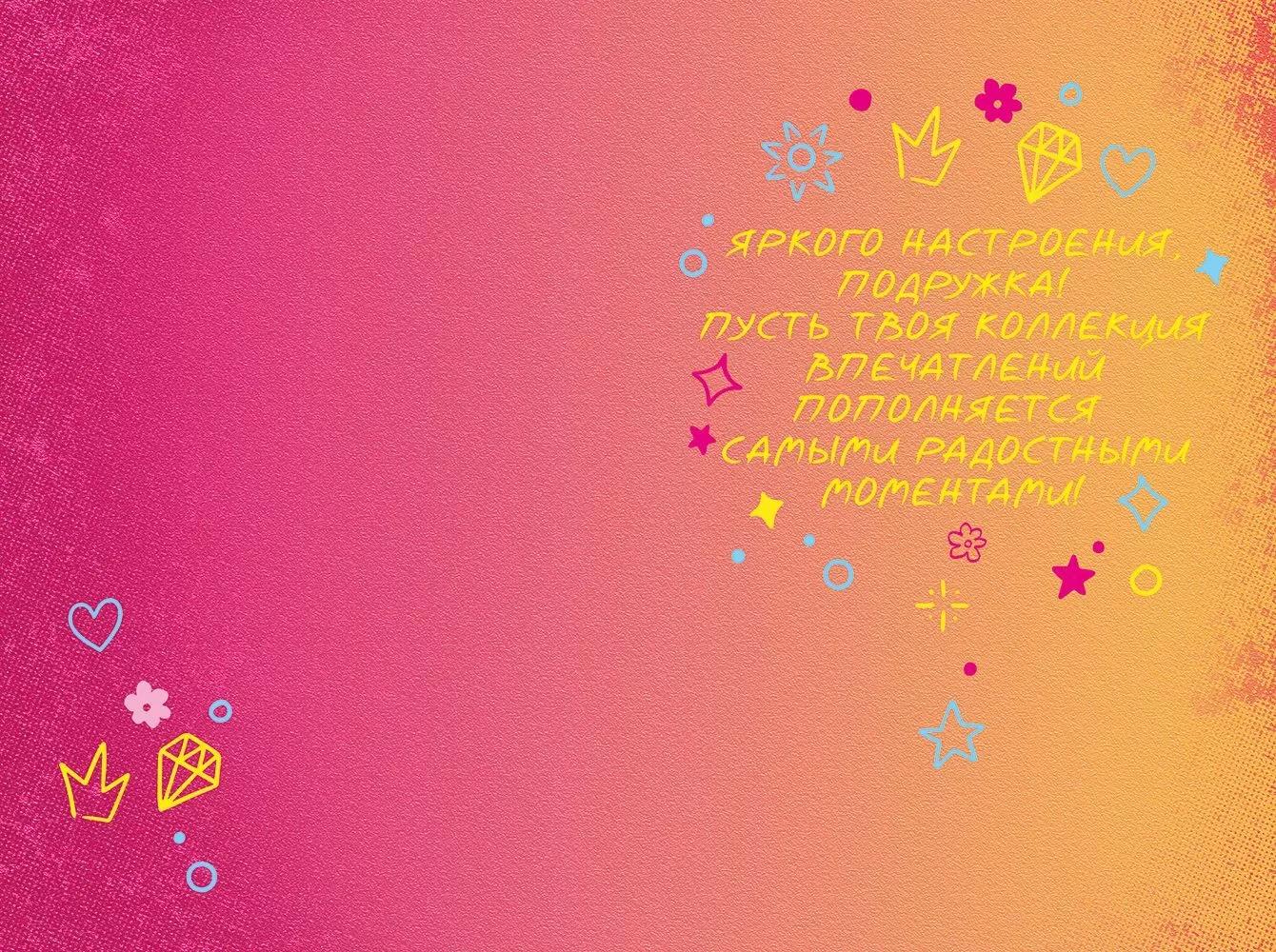 | Открытка ДЕТСКАЯ А5 (ПРАЗДНИК) 50000851 С Днем Рождения! Будь Луч Версией Себя! (девочке)  Поздравительная открытка среднего формата – идеальное решение для подарка! Размеры – 122х182. Внутри – милое пожелание. Изделие изготовлено из прочного материала, который хорошо держит форму. Открытка не помнется при транспортировке и использовании. Сверху на картонную основу нанесено четкое полноцветное изображение. Благодаря высокому качеству печати и защитному покрытию краски не выцветут, и открытка на праздник будет радовать адресата многие годы. Количество экземпляров в одной упаковке – 10 штук. |
