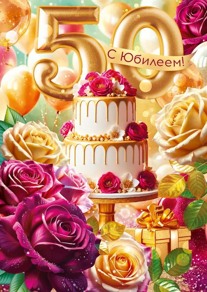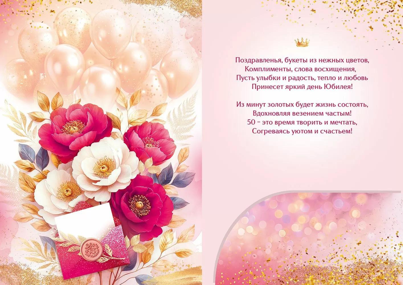 | Открытка ЮБИЛЕЙ ДАТЫ А4 50 лет (МИР ОТКРЫТОК) 1-01-493А С Юбилеем! 50 лет (женская)