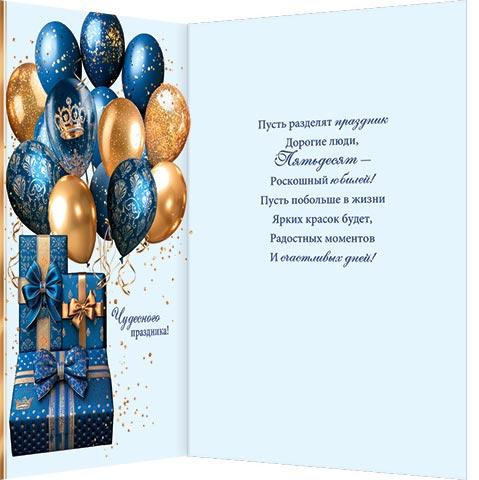 Открытка ЮБИЛЕЙ ДАТЫ А5 50 лет ФДА 23-168-B С Юбилеем! 50 лет (мужская) (с блестками)