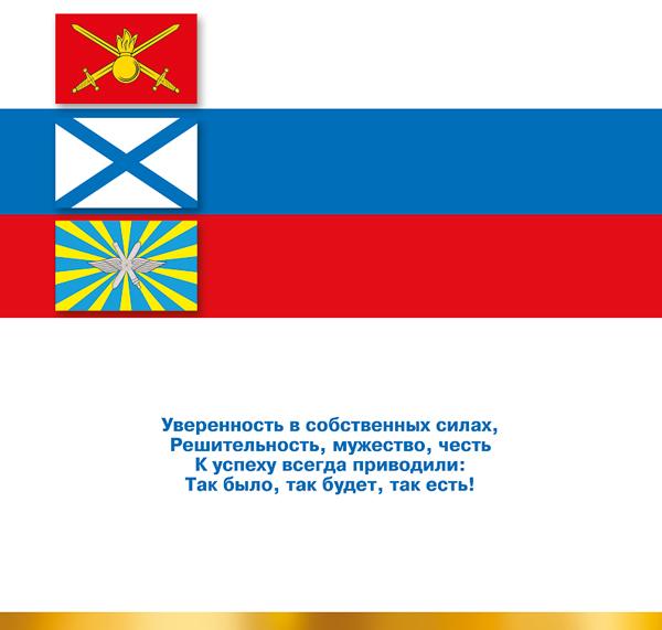 | | Открытка 23 ФЕВРАЛЯ! евро (МИР ОТКРЫТОК) 2-01-23165А С Днем Защит Отеч! Символика РФ (без текста) (тиснение золотой фольгой)  Двойная открытка с фольгой и конгревом С Днем защитника Отечества! 23 ФЕВРАЛЯ ( евро РФ ) 215x216мм |