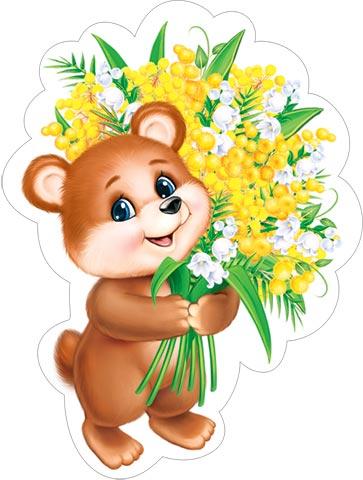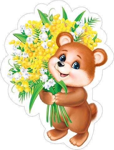 | | Открытка для оформления 8 МАРТА! А4 (МИР ОТКРЫТОК) 7-64-8024А Мишка с мимозами (вырубка) на скотче (с блестками)