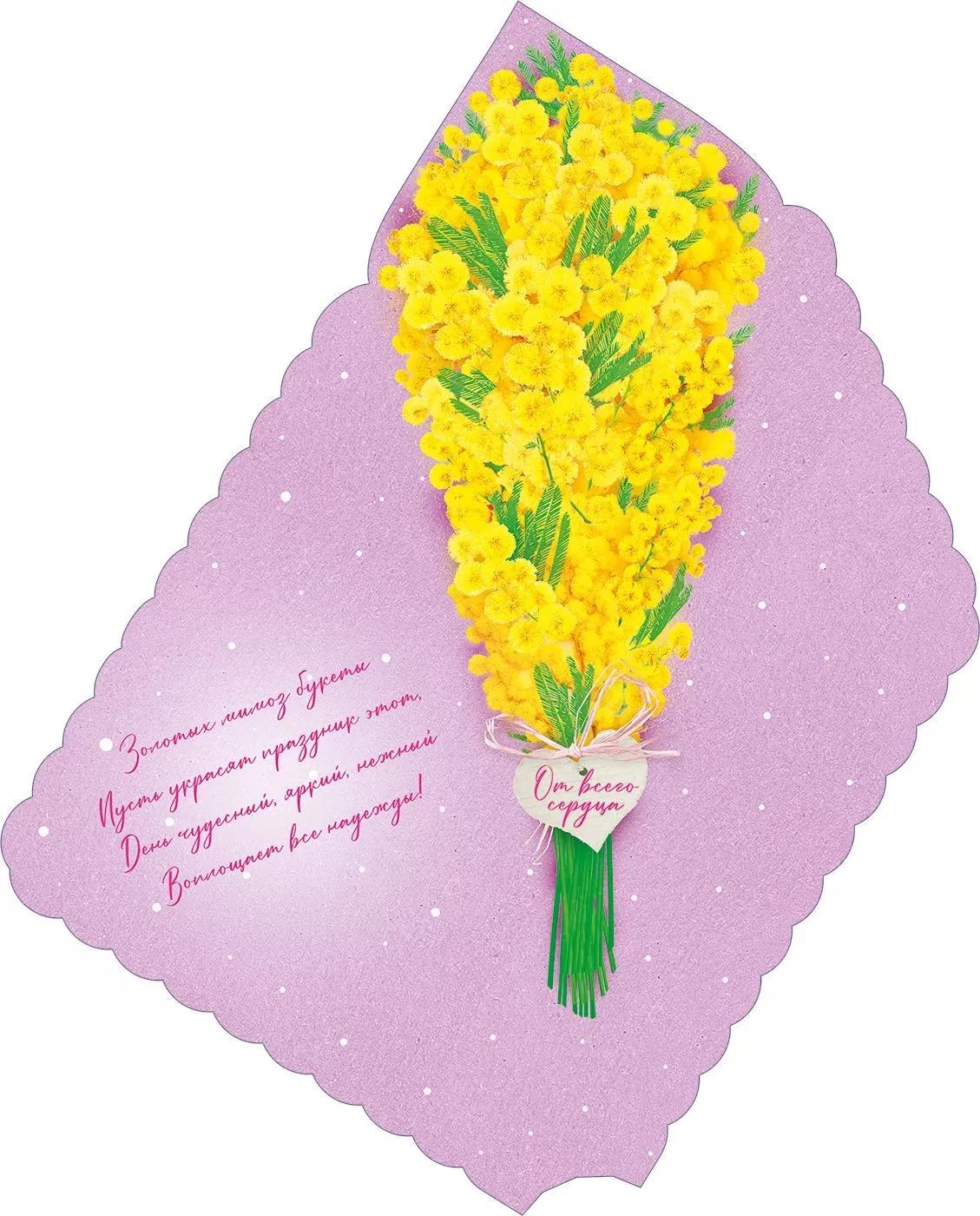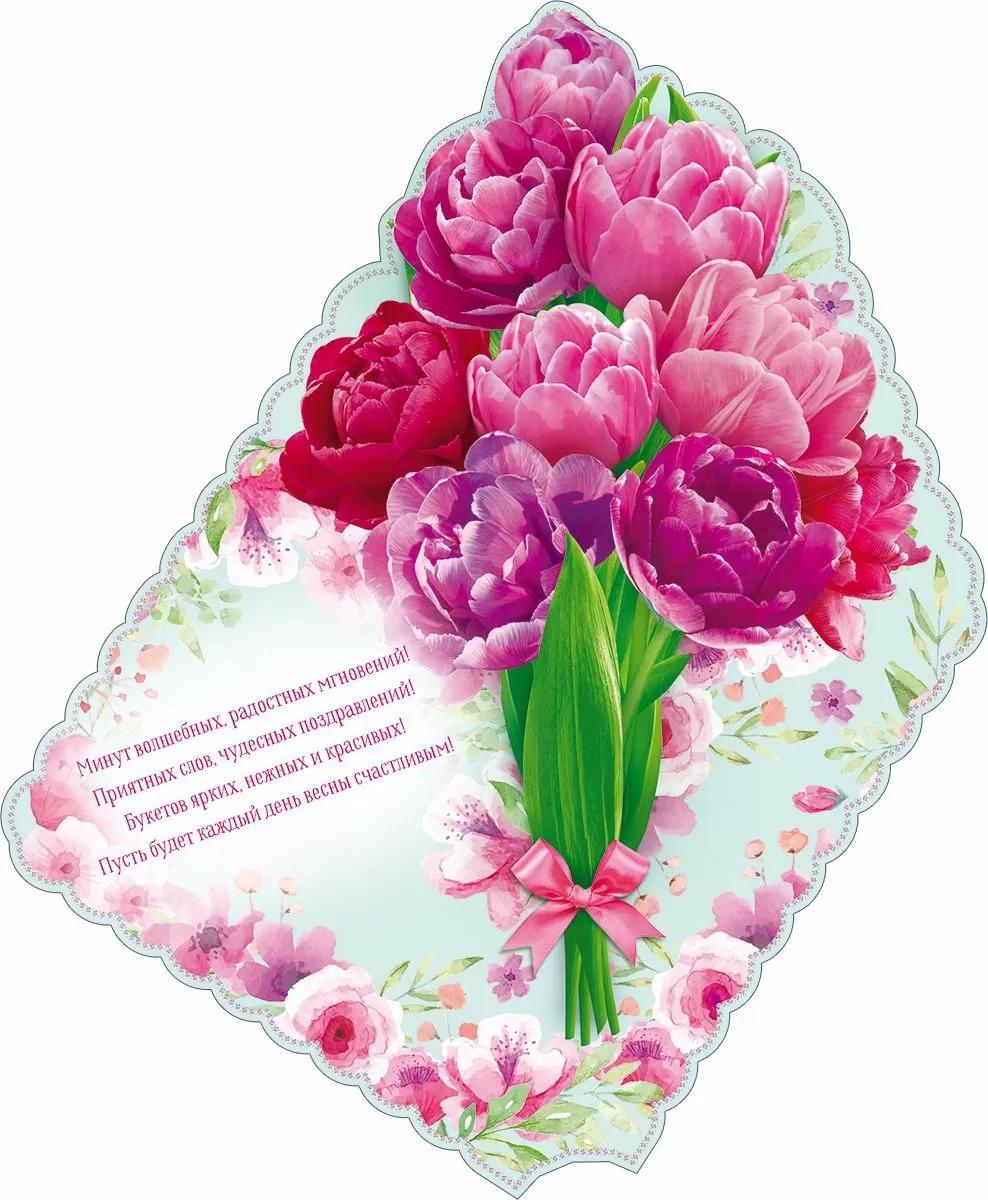 | | Открытка 8 МАРТА! А4 (Открытая Планета) 82067 С 8 Марта Букет (вырубка) (с блестками)