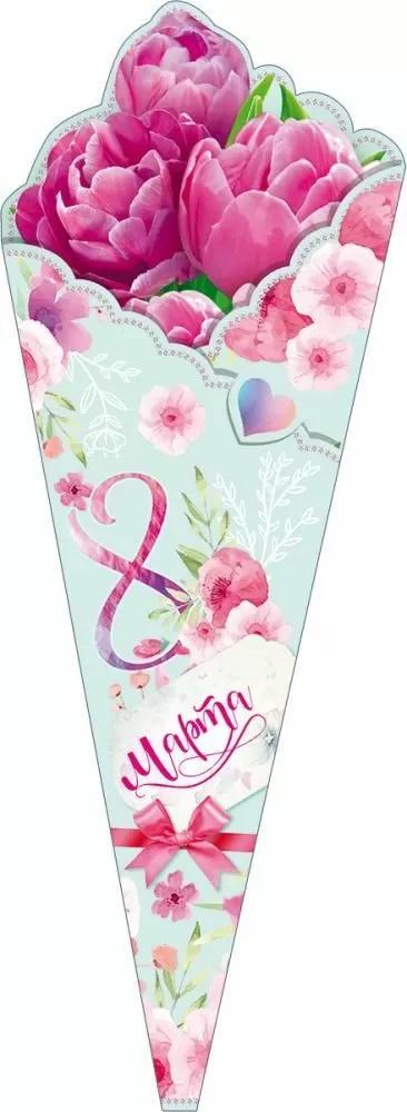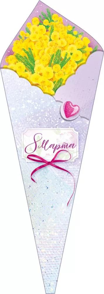 Открытка 8 МАРТА! А4 (Открытая Планета) 81 996 8 Марта Букет (вырубка) (с блестками)