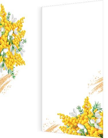 | | Открытка 8 МАРТА! евро (МИР ПОЗДРАВЛЕНИЙ) 083 123 С Днем 8 Марта (без текста) (конверт) (тиснение золотой фольгой) (п/упаковка)  Евроформат (97*204) Отделка: фольга / золотая Внутри без текста. |
