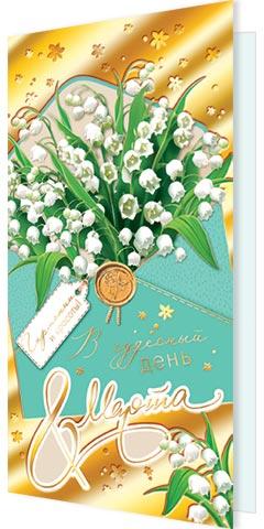 | | Открытка 8 МАРТА! евро (МИР ОТКРЫТОК) 2-01-8366А В День 8 Марта (без текста) (тиснение золотой фольгой)