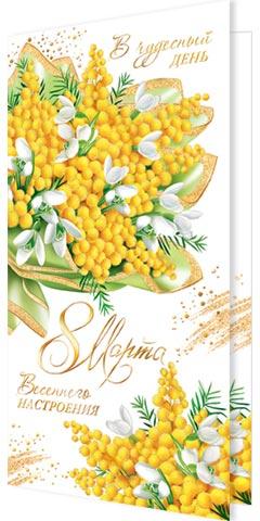 | | Открытка 8 МАРТА! евро (МИР ОТКРЫТОК) 2-01-8391А В Чудесный День 8 Марта (без текста) (тиснение золотой фольгой)