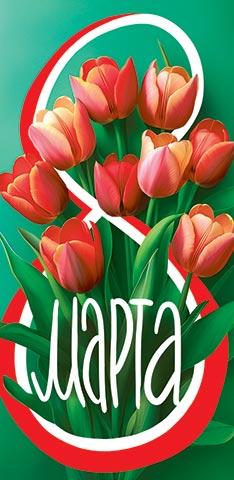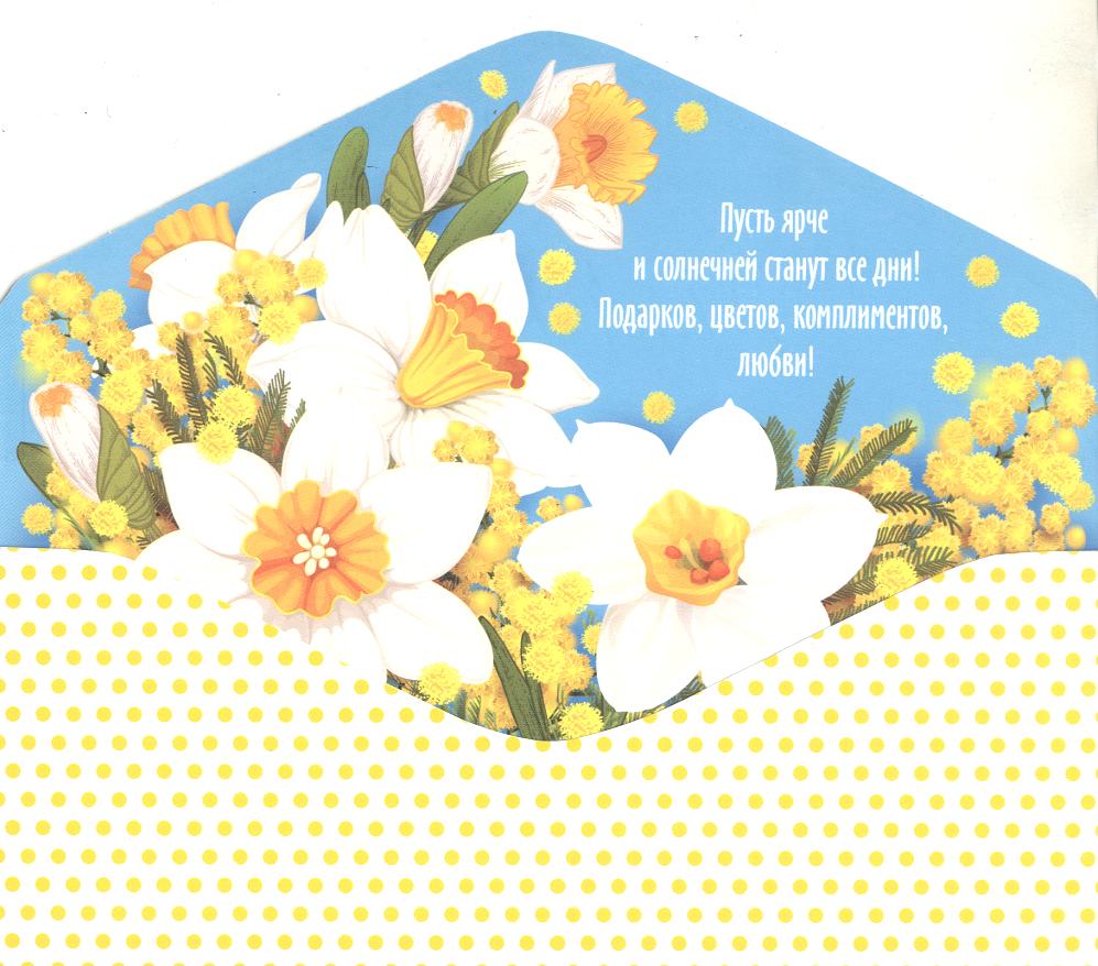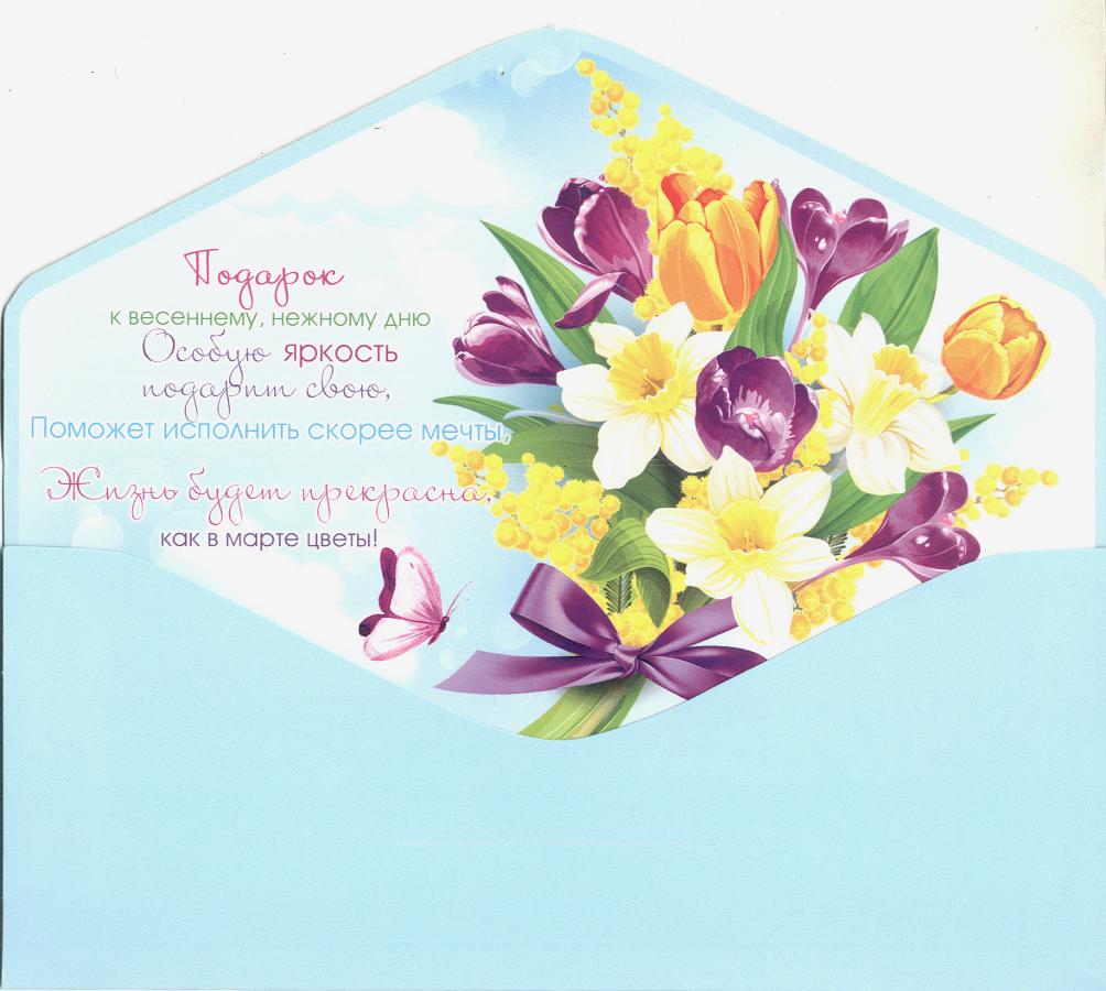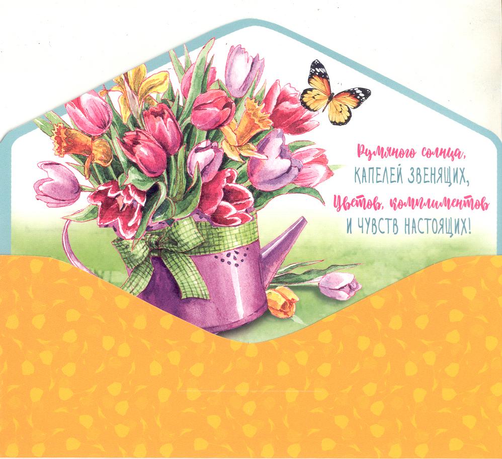 | Открытка 8 МАРТА! для денег (МИР ОТКРЫТОК) 4-15-8054А 8 Марта (без текста)