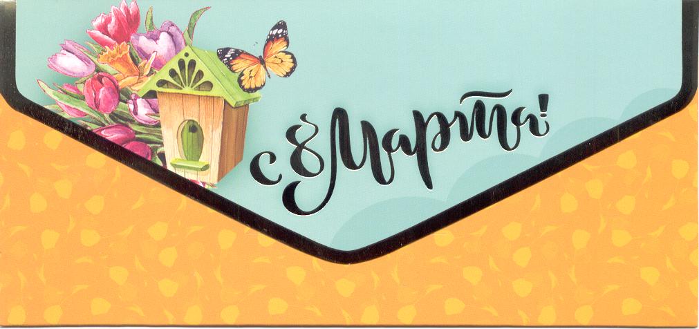 Открытка 8 МАРТА! для денег ФДА 90-1280 8 Марта! лак