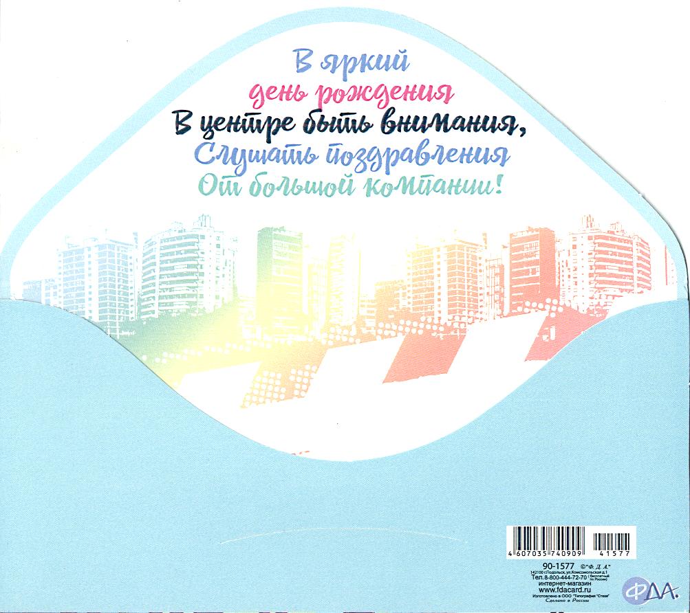 | Открытка ДЕТСКАЯ для денег ФДА 90-1577 С Днем Рождения! лак