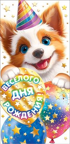 | Открытка ДЕТСКАЯ для денег (МИР ОТКРЫТОК) 2-17-1759А Веселого Дня Рождения (без текста) (тиснение золотой фольгой)