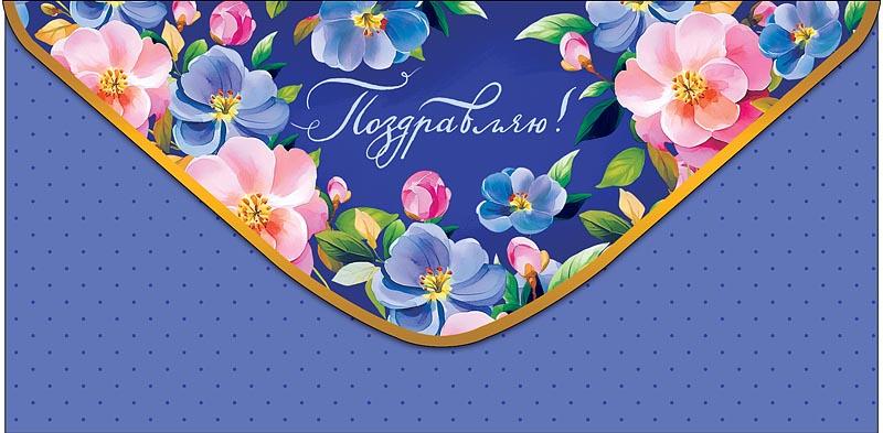 Женский конверт для денег «Поздравляю» с ярким дизайном и изображением цветов. Нежная композиция и приятные слова — залог идеального поздравления. Формат: евро. Материал: картон.