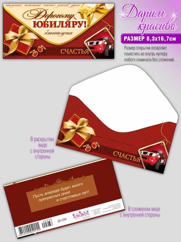 Открытка Поздравительная Юбилей для денег (Гранд-Микс) ДН-938 Дорогому Юбиляру!  Деньги - самый нужный и универсальный подарок, который тоже нуждается в красивой упаковке. Наш конверт для денег легко решит эту задачу! Конверт подходит для купюр всех номиналов. Конверт можно подарить в самостоятельном виде как маленький сувенир, а можно приложить к шоколадке, коробке конфет, букету цветов, небольшому презенту или подарку. |
